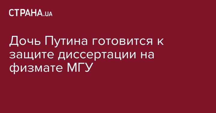 Глава фонда "Иннопрактика" Катерина Тихонова, которую считают дочерью президента России Владимира Путина, 24 мая будет защищать диссертацию на соискание звания кандидат физико-математических наук. На соответствующий анонс на сайте МГУ обратили внимание "Открытые медиа".