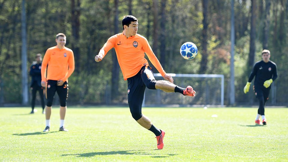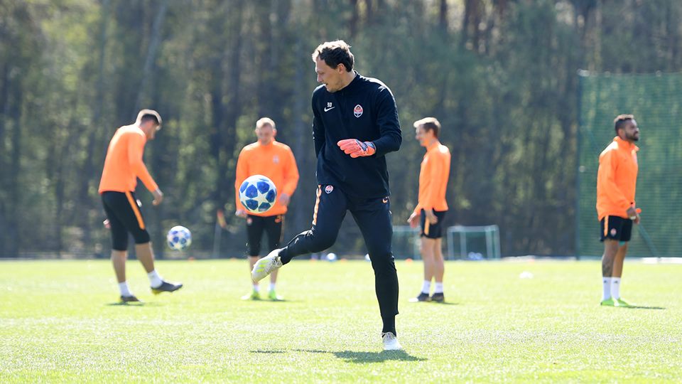 17:20 Тренировка Шахтера за два дня до матча. Вместе с командой тренировался и травмированный Тарас Степаненко.