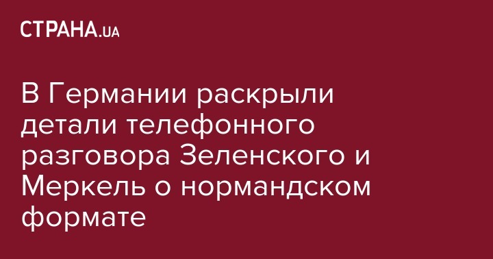 По словам официального представителя правительства ФРГ Ульрике Деммер, Владимир Зеленский показал в разговоре свою заинтересованность в прогрессе урегулирования конфликта на Донбассе в "Нормандском формате" (Украина, Германия, Франция и Россия).