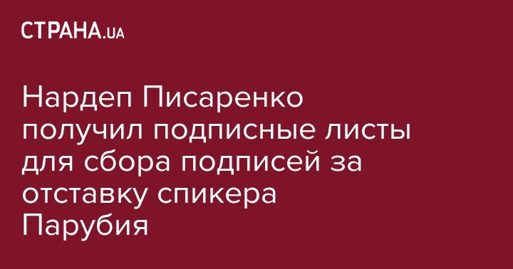 Аппарат Верховной Рады Украины выдал нардепу из депутатской группы "Видродження" Валерию Писаренко подписные листы для сбора подписей депутатов за отзыв с поста спикера парламента Андрея Парубия. Об этом говорится в сообщении на сайте ВРУ.