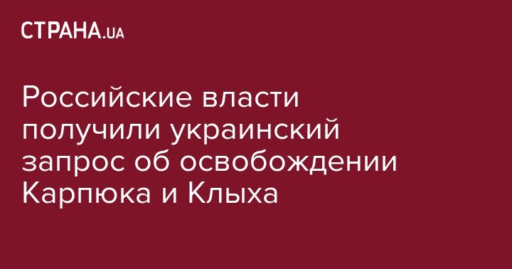 "Поступившие в Минюст России запросы Минюста Украины о предоставлении на основании ст. 6 Конвенции документов, необходимых для рассмотрения вопроса передачи Клыха С. и Карпюка Н. на Украину для дальнейшего отбывания наказания в виде лишения свободы, рассматриваются", - отметили в Минюсте.