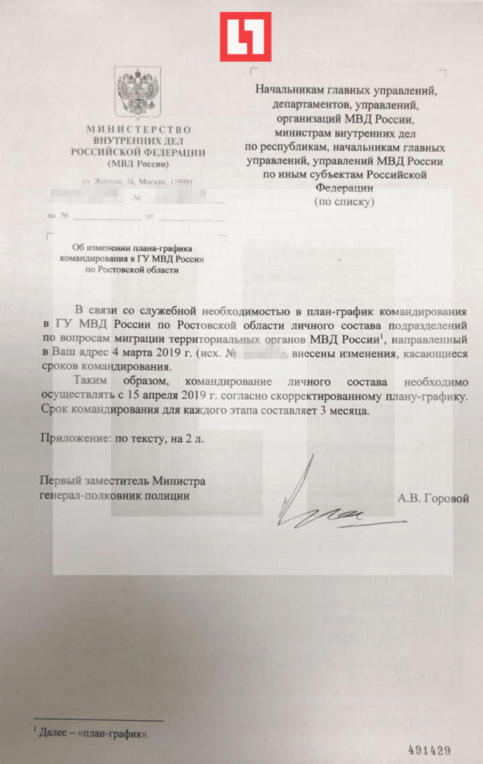 Судя по документу, опубликованному изданием, чиновников МВД, специализирующихся на вопросах миграции, действительно массово отправлят в командировки к границе с Донбассом.