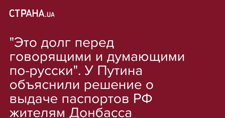 "Это долг перед говорящими и думающими по-русски". У Путина объяснили решение о выдаче паспортов РФ жителям Донбасса