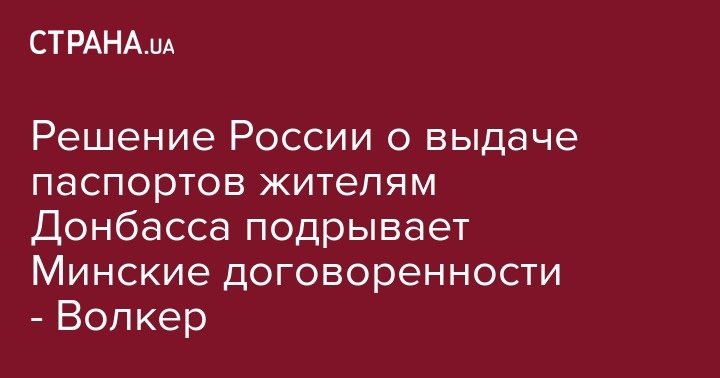 Решение России о выдаче паспортов жителям Донбасса подрывает Минские договоренности - Волкер