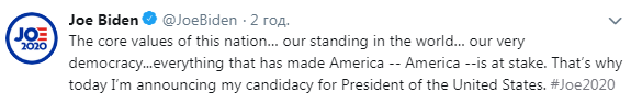 Бывший вице-президент США Джо Байден, вокруг которого начался раскручиваться украинский скандал, официально объявил о баллотировании на президентские выборы в США 2020 года. Он хочет стать кандидатом от Демпартии. Джо также опубликовал короткий видеоролик, в котором объяснил свое решение баллотироваться в президенты США.