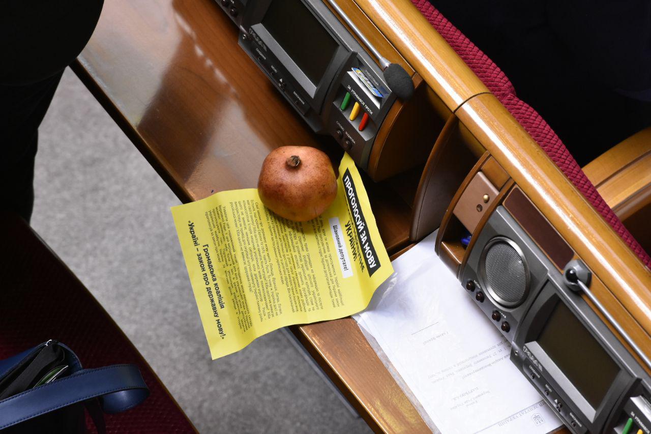 Отметим, что сегодняшнее заседание - третье, которое Савченко посетила после освобождения из СИЗО 15 апреля. Сегодня Надежда была одета в черный брючный костюм и розовую рубашку. Кроме граната на столе у нее лежала агитационная листовка с призывом к депутатам проголосовать за языковой закон. К слову, сама Савченко принятие документа поддержала.