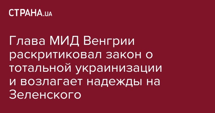 Глава МИД Венгрии раскритиковал закон о тотальной украинизации и возлагает надежды на Зеленского