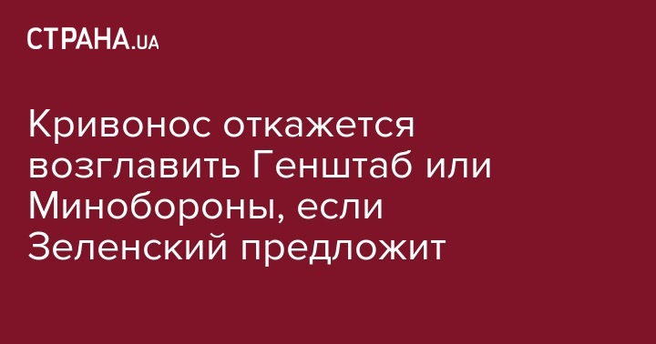 Кривонос откажется возглавить Генштаб или Минобороны, если Зеленский предложит
