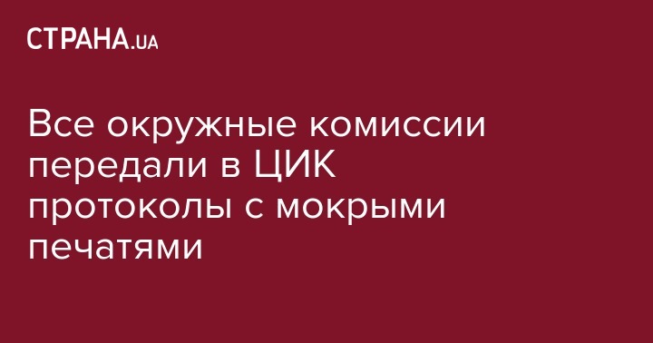 Все окружные комиссии передали в ЦИК протоколы с мокрыми печатями