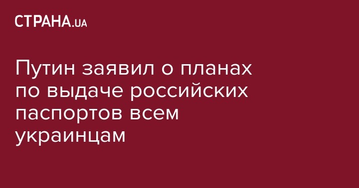 Президент России Владимир Путин сообщил, что Москва рассматривает возможность о предоставлении российского гражданства в упрощенном порядке не только жителям отдельных районов т.н. "ДНР" и "ЛНР", а гражданам всей Украины.