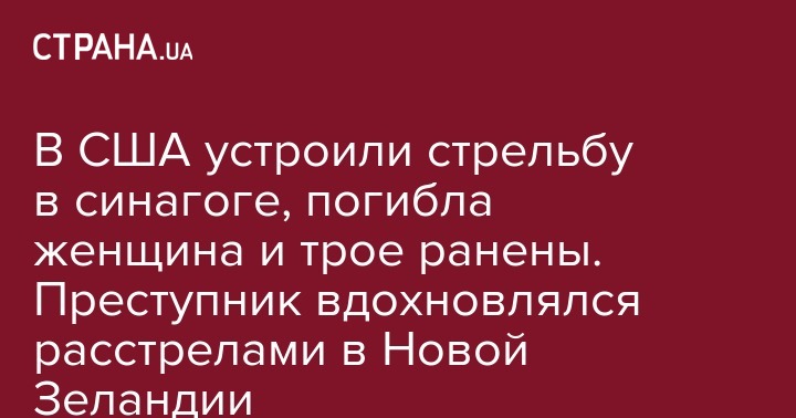 Стрелок, устроивший 27 апреля бойню в синагоге калифорнийского города Повэй, вдохновлялся терактами в Новой Зеландии. В результате происшествия погибла одна женщина, еще трое получили ранения. Полиция уже задержала подозреваемого.