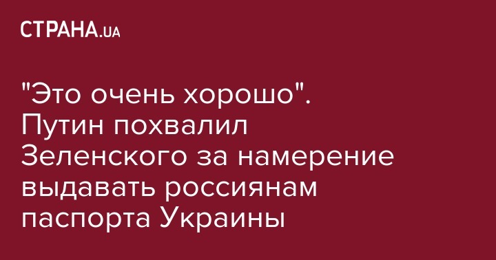 "Это очень хорошо". Путин похвалил Зеленского за намерение выдавать россиянам паспорта Украины