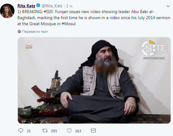 Любопытно, что Абу Бакр аль-Багдади впервые с 2014 года появился на видео. Он рассказал, что бои за сирийский город Багуз окончены. Они начались в феврале 2019 года при участии Демократических силы Сирии и американской коалиции. 23 марта сирийские военные объявили о завершении операции.