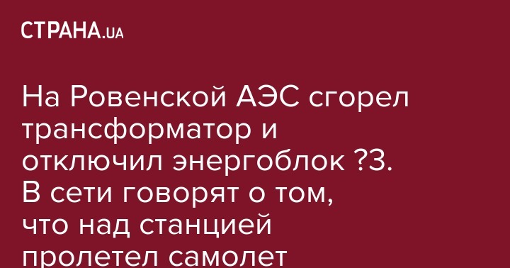 На Ровенской АЭС сгорел трансформатор и отключил энергоблок №3. В сети говорят о том, что над станцией пролетел самолет