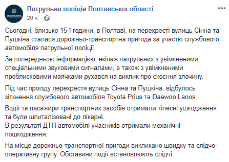 Скриншот: Facebook/ Патрульна поліція Полтавської області