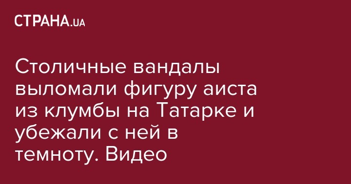 Столичные вандалы выломали фигуру аиста из клумбы на Татарке и убежали с ней в темноту. Видео