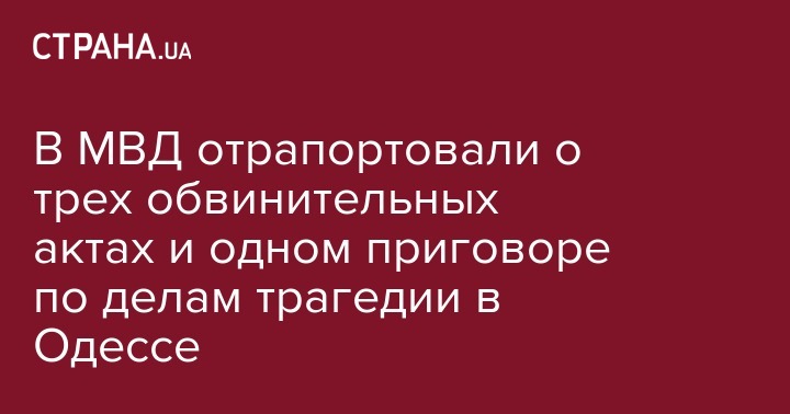 Три обвинительных акта направлено в суд по трагическими событиям в Одессе 2 мая 2014 года, еще одному лицу вынесен приговор. Об этом 2 мая заявил первый заместитель министра внутренних дел Украины Сергей Яровой, пишет пресс-служба МВД Украины.
