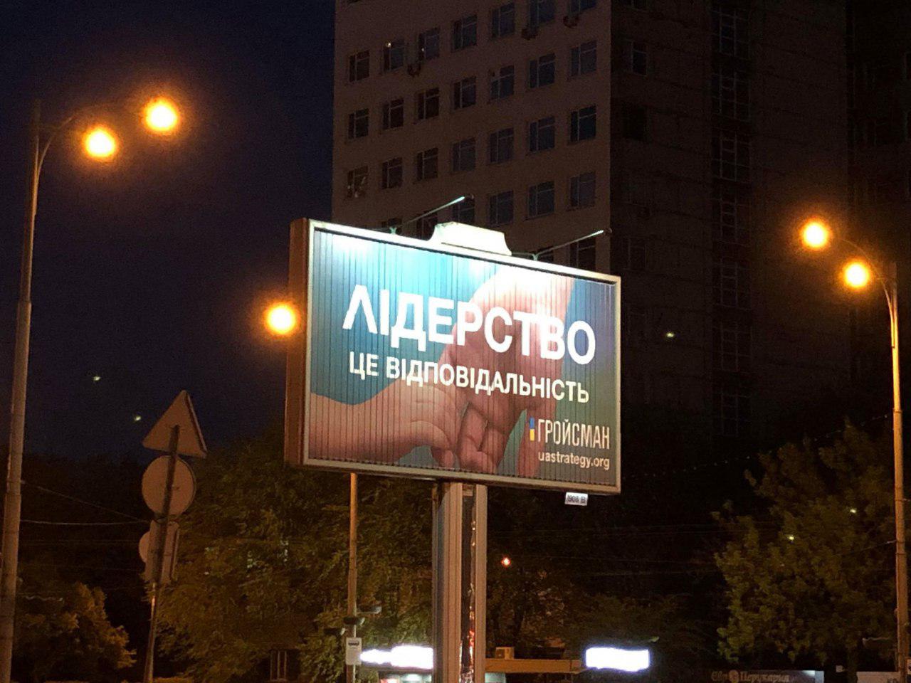 В Киеве начали появляться билборды с надписью "Лидерство - это ответственность", подписанные фамилией премьер-министра Украины Владимира Гройсмана.