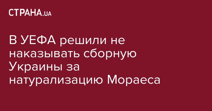 В УЕФА приняли решение не наказывать сборную Украины за натурализацию Жуниора Мораеса. В Контрольно-дисциплинарном комитете УЕФА подтвердили правомерность его выступлений за сборную Украины в матчах с Португалией и Люксембургом.