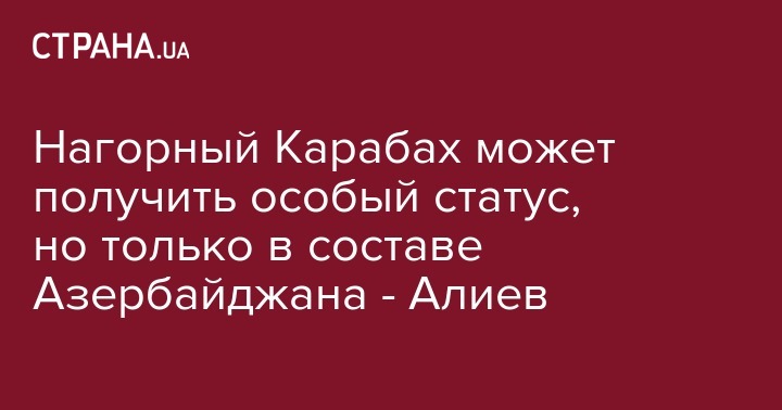 "Нагорный Карабах никогда не получит независимости, на исторических землях Азербайджана никогда не будет создано второе армянское государство. Это главный вопрос. Что касается статуса Нагорного Карабаха, это вопрос будущего. Конечно, определенный статус может быть предоставлен", - заявил Алиев.
