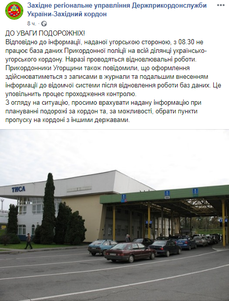 В пятницу, 3 мая, затруднено движение через пункты пропуска на венгерско-украинской границе, так как у венгров не работает база данных Пограничной полиции. Об этом сообщает пресс-служба Западного регионального управление Госпогранслужбы Украины на странице в Facebook.