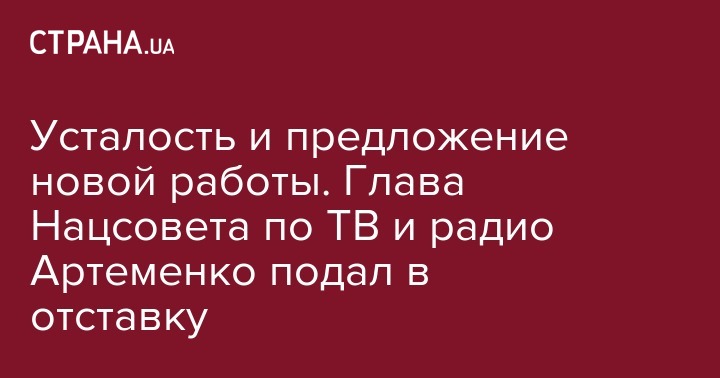 Усталость и предложение новой работы. Глава Нацсовета по ТВ и радио Артеменко подал в отставку