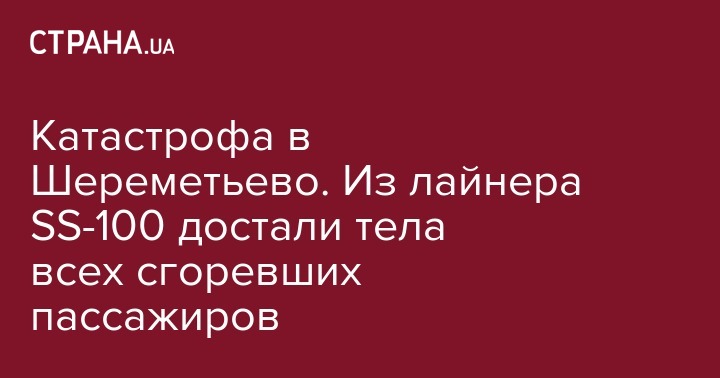 Сегодня утром, 6 мая, из самолета Sukhoi Superjet 100 (SS-100 - Прим.Ред.), загоревшегося при аварийной посадке в аэропорту Шереметьево, были извлечены тела всех погибших.
