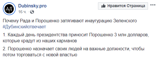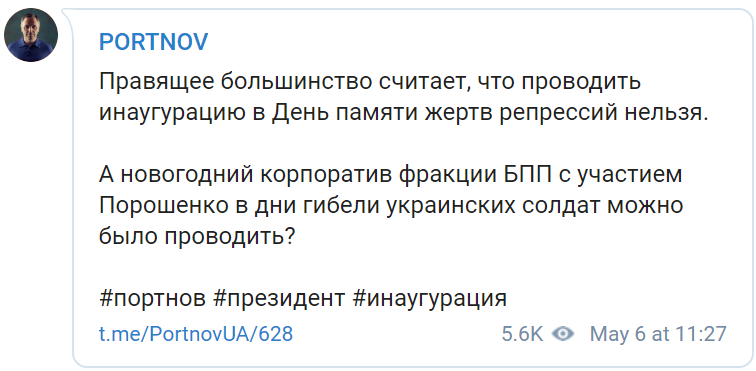Нардеп Сергей Лещенко написал, что активнее всего против инаугурации 19 мая выступают сторонники Петра Порошенко, показывая тем самым страх перед еще одним экзаменом - досрочными парламентскими выборами.