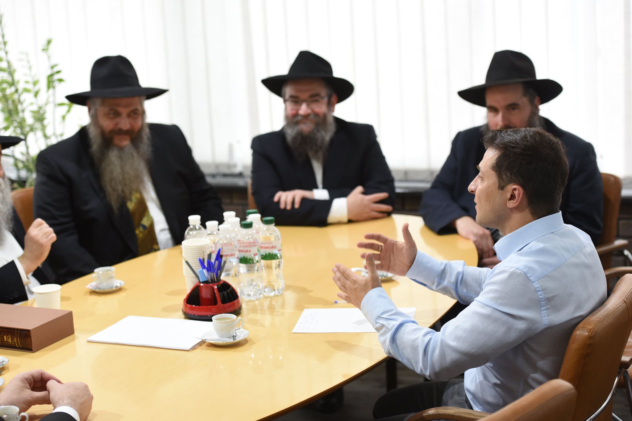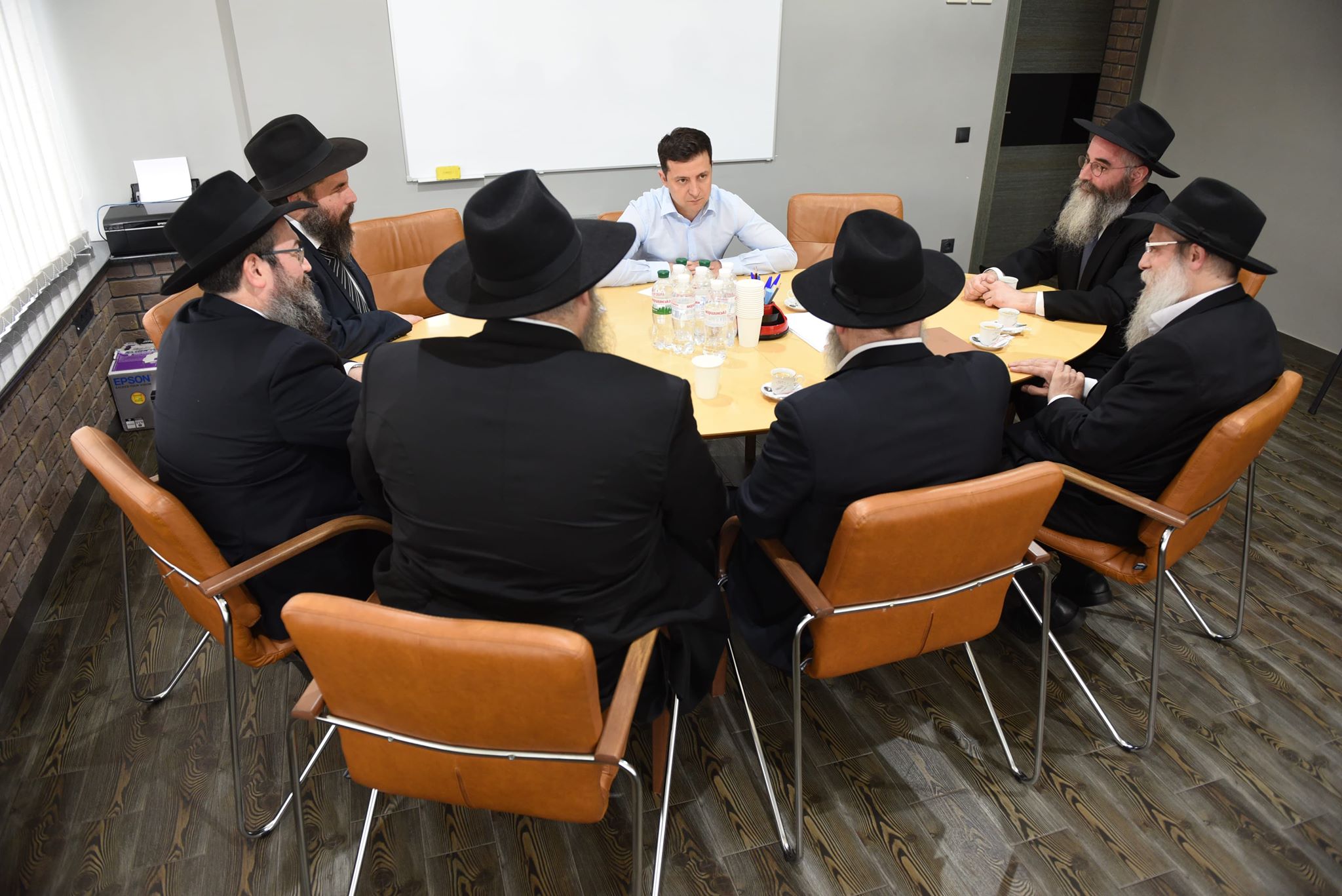 За круглым столом с новоизбранным главой государства собрались: раввин из Днепра Шмуэль Каминецкий, раввин из Киева Моше Реувен Асман, раввин Мойше Москович из Харькова, раввин Авроом бен Шалом-Дов-Бер Вольф из Одессы, раввин из Житомира Шломо Вильгельм, а также раввин Пинхас Вышецкий из Донбасса.