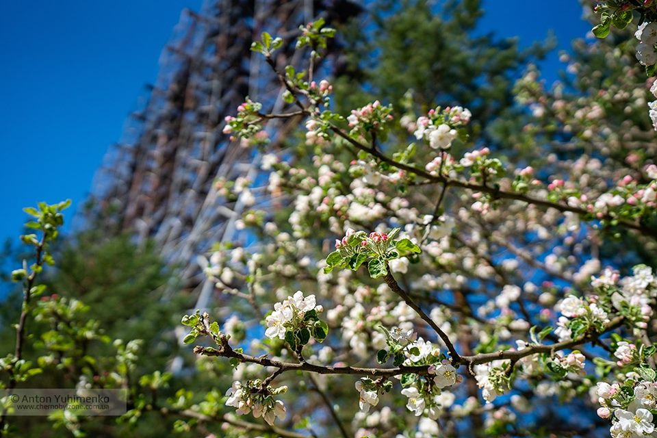 В зоне отчуждения ЧАЭС в районе Чернобыль-2 начала обильно цвести дикая яблоня. Об этом в понедельник, 6 мая, сообщили сотрудники Государственного агентства Украины по управлению зоной отчуждения на своей странице в Facebook.