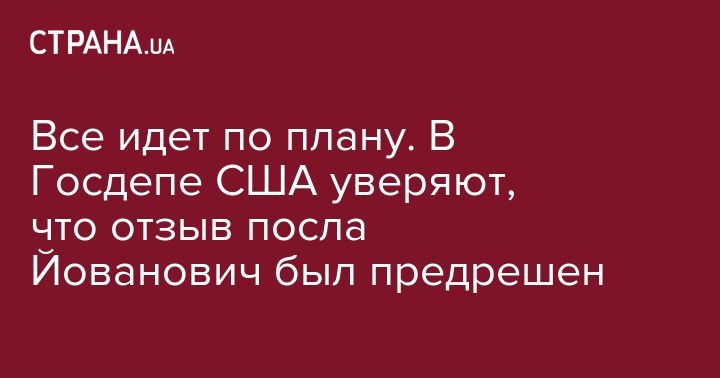 "Посол Йованович завершает свой трехлетний дипломатический срок в Киеве в 2019 году, как и планировалось", - отметили во внешнеполитическом ведомстве США.
