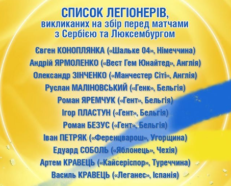 Сегодня, 7 мая, Федерация футбола Украины (ФФУ) обнародовала список легионеров, которые получили вызов в национальную сборную для участия в отборочных матчах на Евро-2020 против Сербии (7 июня) и Люксембурга (10 июня).
