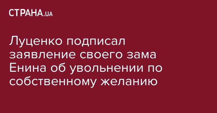 Генеральный прокурор Юрий Луценко подписал заявление своего заместителя Евгения Енина об увольнении по собственному желанию. Об этом со ссылкой на источники в ГПУ пишут "Украинские Новости"
