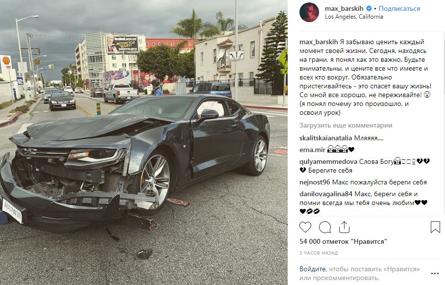 Украинский певец Макс Барских попал в серьезное ДТП в Лос-Анджелесе. Об этом он сообщил в Instagram, сопроводив ее снимком разбитого автомобиля.