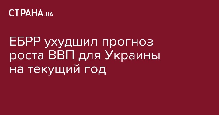 Европейский банк реконструкции и развития (ЕБРР) ухудшил прогноз роста внутреннего валового продукта (ВВП) с 3% до 2,5% по итогам 2019 года, в 2020 году рост экономики ожидается на уровне 3%. Об этом говорится в отчете банка, пишет Интерфакс-Украина.