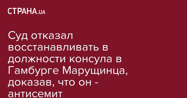 Суд отказался восстановить в должности консула в Гамбурге Василия Марущинца, который в мае 2018 года был уволен Министерством иностранных дел за антисемитские публикации в социальной сети Facebook.
