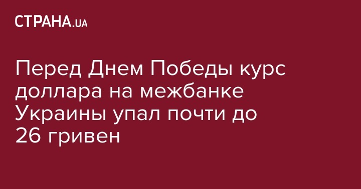 По данным НБУ, справочный курс гривни к доллару США на межбанковском валютном рынке 8 мая укрепился до 26,2601 грн/$1 с 26,3471 грн/$1.