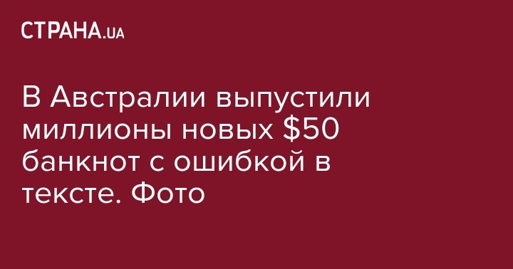 В Австралии выпустили миллионы новых $50 банкнот с ошибкой в тексте. Фото