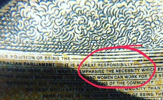 Ошибка скрывалась в мелком шрифте и купюры были запущены в оборот. Вместо слова "responsibility" (ответственность - англ.) на деньгах написали "responsibilty". При этом в Банке Австралии сообщили, что все банкноты с опечаткой остаются действительны. Как отмечают СМИ, общая стоимость купюр с опечаткой составляет 2,3 миллиарда австралийских долларов.