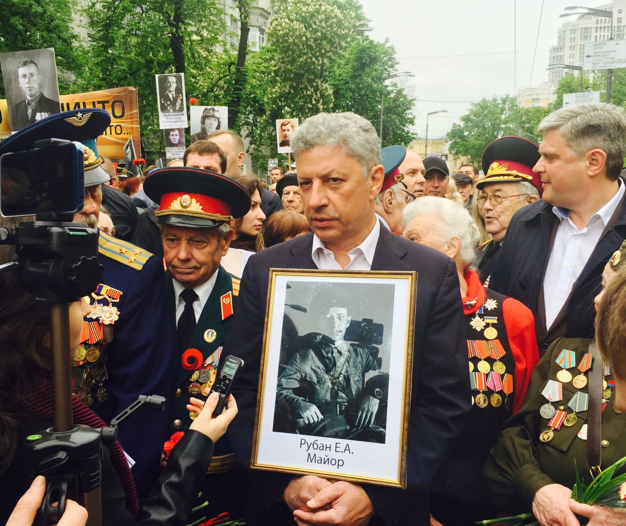 Во главе колонны, в которую вошли депутаты и ветераны был нардеп Юрий Бойко. Он поздравил украинцев с "праздником Великой Победы в Великой Отечественной войне".
