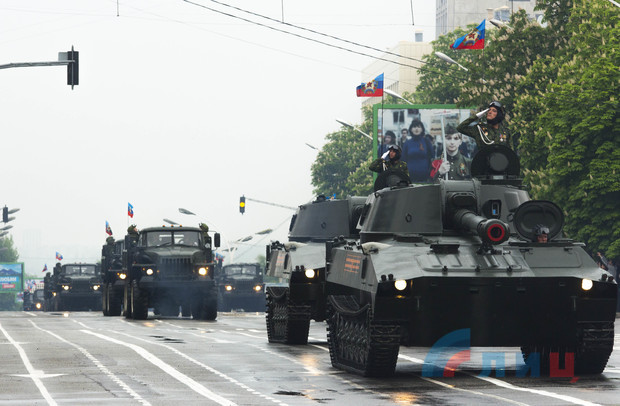 В Луганске парад прошел на Театральной площади. Проехала как раритетная техника времен Второй мировой войны, так и современная российская. Так, были показаны танки Т-72, БМП-2, БТР-80, САУ "Гвоздика", гаубицы "Мста-Б", РСЗО "Град", ЗРК "Стрела-10" и прочее.