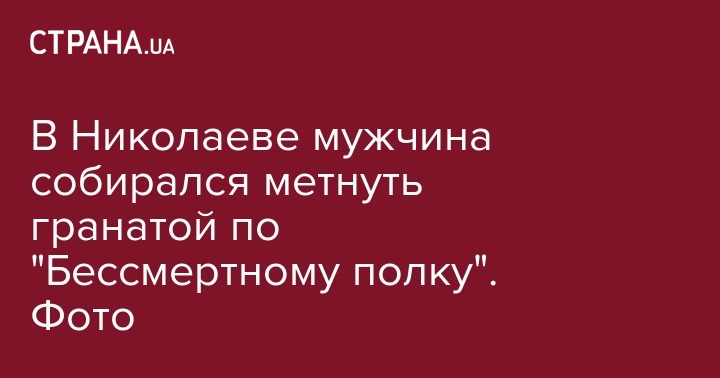 В День Победы, 9 мая, мужчина в Николаеве попытался бросить неизвестный предмет в участников акции "Бессмертный полк", которые двигались колонной. Силовики идентифицировали предмет как армейскую гранату РДГ-26. Об этом сообщили в пресс-службе Нацполиции области.