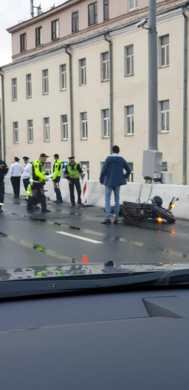 В сети опубликовали фотографии с места гибели известного телеведущего и главного редактора радиостанции "Говорит Москва" Сергей Доренко, который скончался сегодня в результате падения с мотоцикла и последующей комы.
