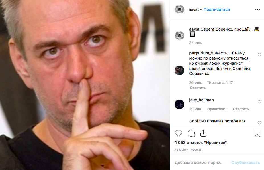 "Сергей Доренко скончался. Я относился к нему по-разному. Но он - еще один символ эпохи. Теперь ушедший. Земля ему пухом..."