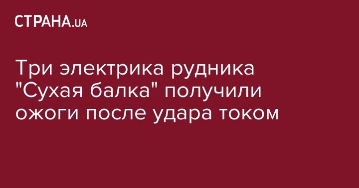 Три электрика в Кривом Роге на руднике "Сухая Балка", который входит в группу DCH Александра Ярославского, получили ожоги из-за поражения электрическим током, передает Интерфакс-Украина.