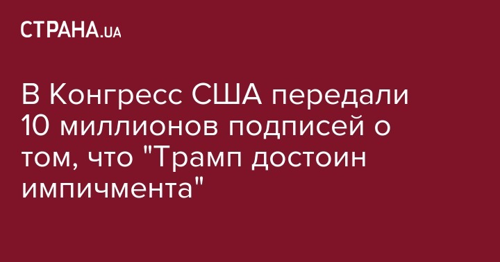 Конгрессу США передали несколько петиций, которые собрали 10 миллионов подписей в пользу того, что президент Дональд Трамп достоин импичмента. Об этом сообщает американский телеканал NBC News.