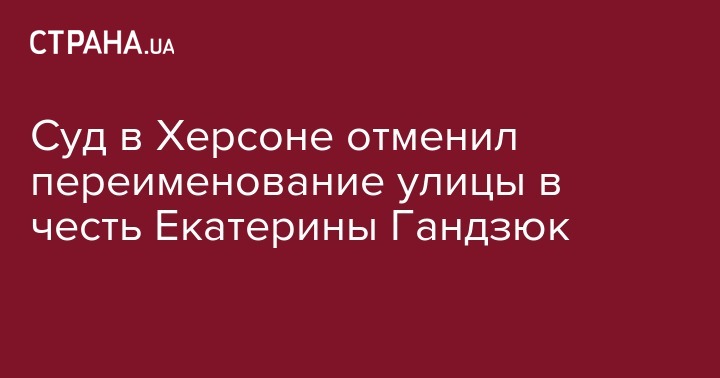 Херсонский окружной административный суд отменил присвоение имени покойной активистки Екатерины Гандзюк улице в Херсоне. Об этом говорится в сообщении пресс-службы суда.