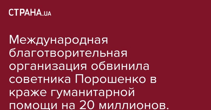 Международная благотворительная организация обвинила советника Порошенко в краже гуманитарной помощи на 20 миллионов. Документ