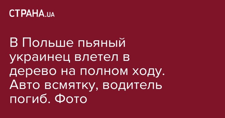 Как сообщала "Страна", два украинца погибли, двое грузин ранены после столкновения авто с деревом в Польше.