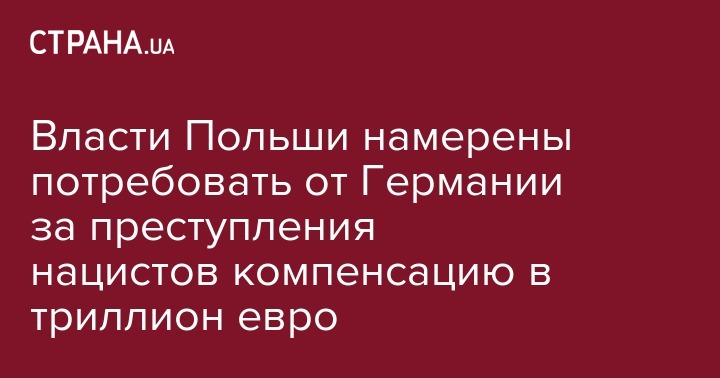 Власти Польши могут потребовать у Германии компенсацию за ущерб, нанесенный во время нацистской оккупации в годы Второй мировой войны. Ее сумма оценивается в объеме примерно $1 трлн.